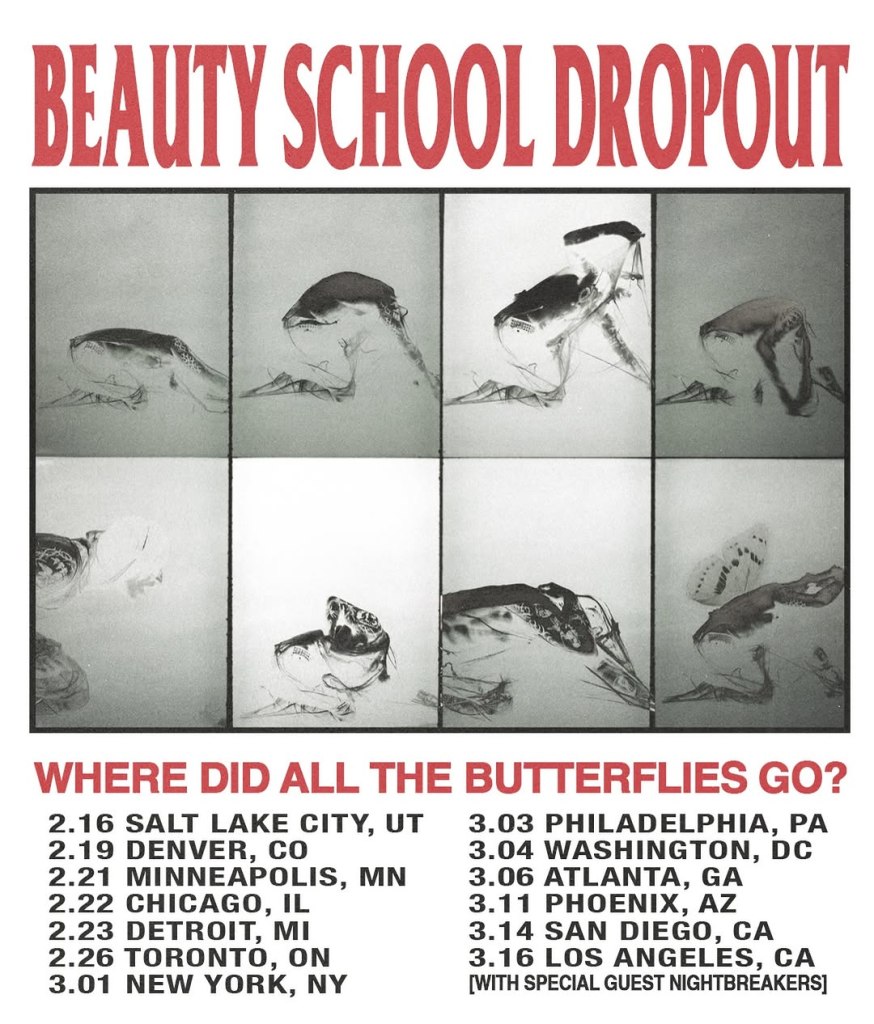 The WHERE DID ALL THE BUTTERFLIES GO? tour, headlined by Beauty School Dropout with support from NIGHTBREAKERS, felt like evidence that people still care, and that they’re willing to prove it. If growing up is supposed to dull devotion – if the butterflies are supposed to disappear – no one told this room.